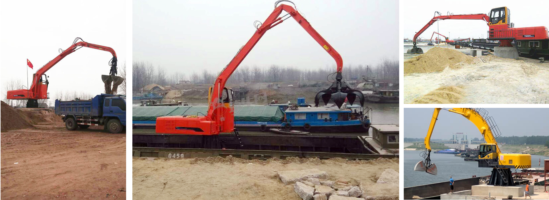 金山定式抓料機(jī)是在挖掘機(jī)的基礎(chǔ)上研發(fā)的一機(jī)多用型專用抓料設(shè)備,主要服務(wù)于:船運(yùn)碼頭,物料貨場(chǎng),車站煤場(chǎng),堆卸吊裝等工況條件下的沙石、煤料、鋼材各種散裝貨物及堆裝貨物的裝卸運(yùn)輸工作。